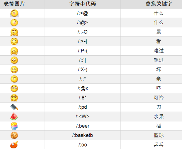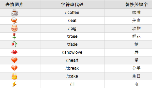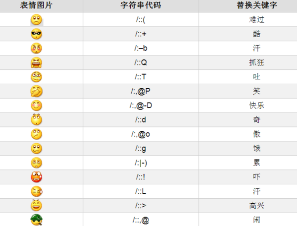 微信表情符号对照表